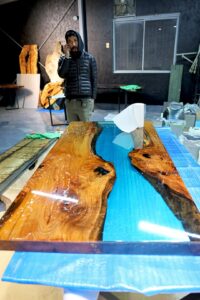 【家具メッセバザール】出展用に来場者プレゼント樹オリジナルコースター制作中